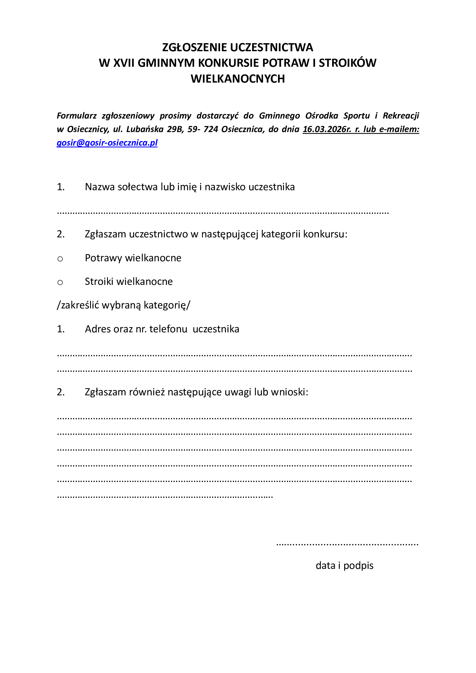 Gminny Ośrodek Sportu i Rekreacji to samorządowa jednostka budżetowa gminy wiejskiej Osiecznica